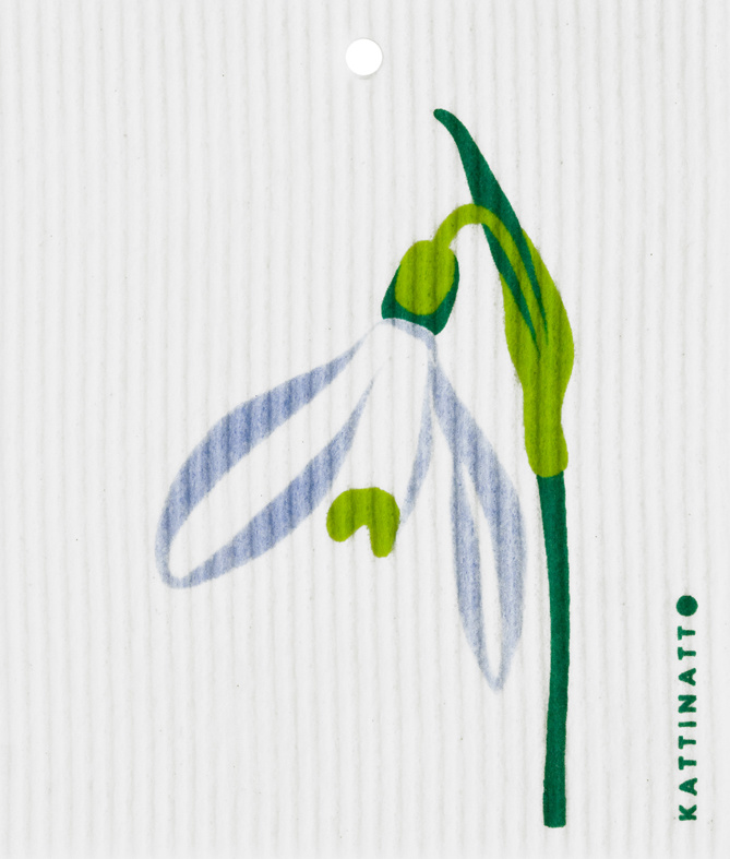 Add some colour to your daily chores with this functional Swedish dishcloth with a print of a snowdrop. Cleaning the kitchen, bathroom etc. will become a pleasure. Due to the high absorption content, the dishcloth is very suitable for washing dishes, cleaning, and cleaning surfaces. The cheerful colours add ambiance to your kitchen. A beautiful dishcloth with colourful prints can remain in the sink or on the countertop. This one has a hole, so you can easily hang up the kitchenaid. This organic cloth is typically Swedish and very popular in Swedish kitchens since 1950.