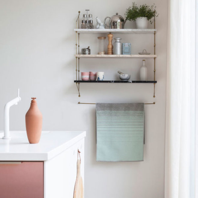 The Twotowel is a new kitchen cloth. The tea towel and hand towel are interwoven in color and function as one cloth. When you hang the towel, there is one side that can be used as a and towel and the other side as a tea towel.