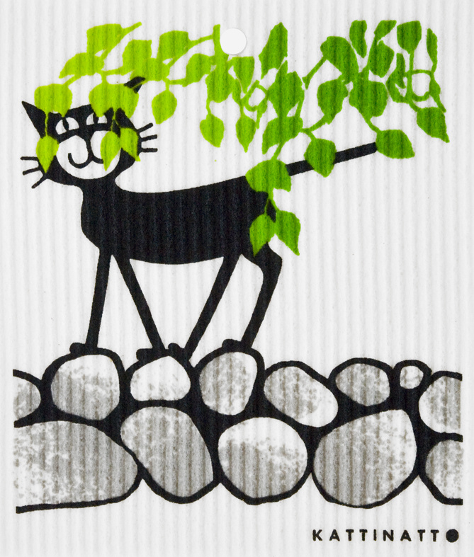 Een vrolijke functionele Zweedse vaatdoek met print van een Kat op een stenen muurtje. Schoonmaken wordt nu een plezierige bezigheid. Doordat de vaatdoek goed en veel vocht opneemt is ze zeer geschikt voor de afwas, reiniging en het schoonmaken van oppervlakken.