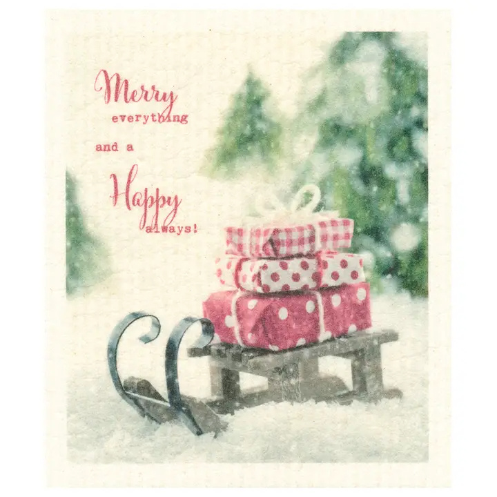 Schoonmaken is nu echt plezierig met deze vrolijke Scandinavische vaatdoek met print van een slee vol kerstcadeaus. Met een hoog absorptiegehalte is de vaatdoek zeer geschikt voor de afwas, reiniging en het schoonmaken van oppervlakken.